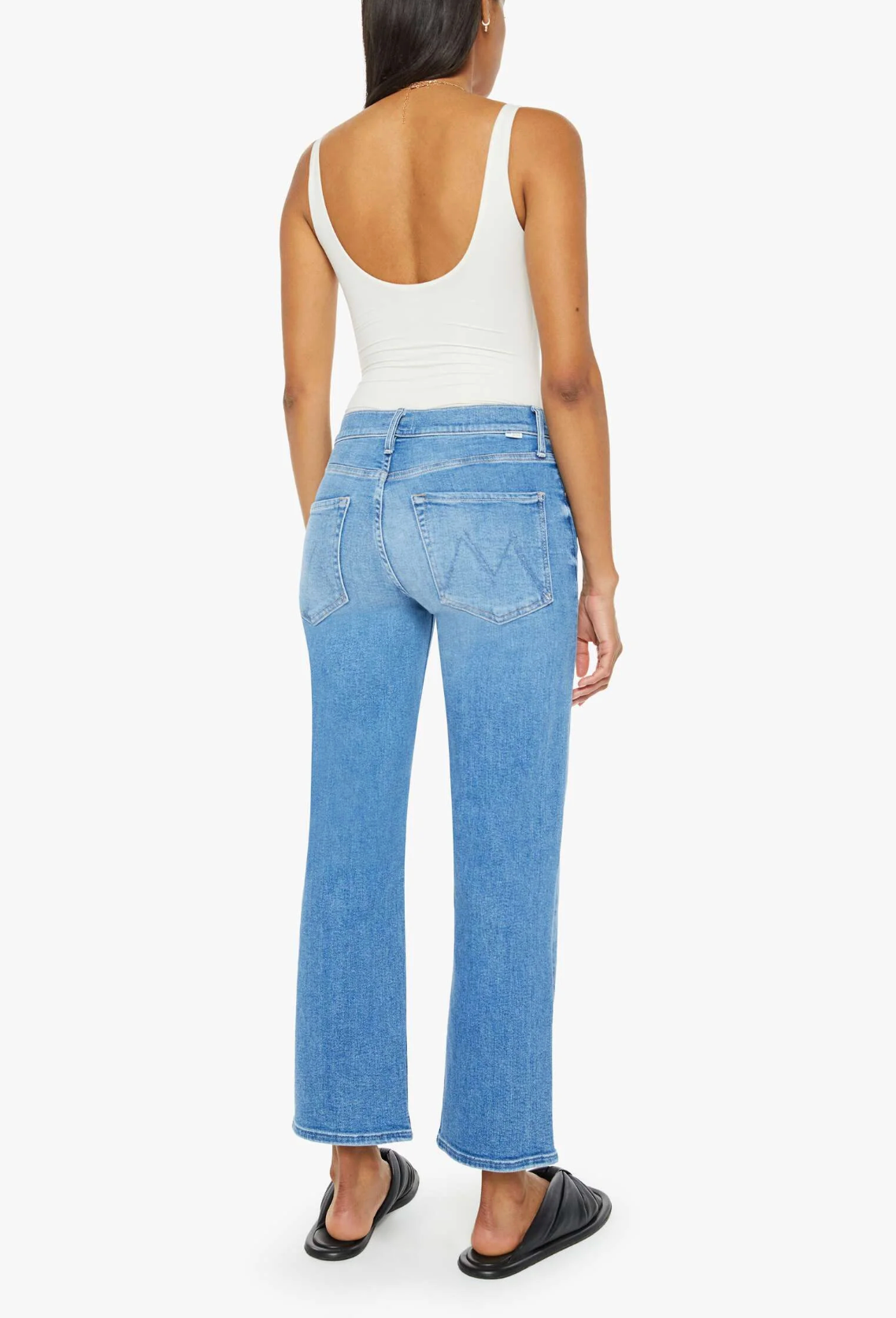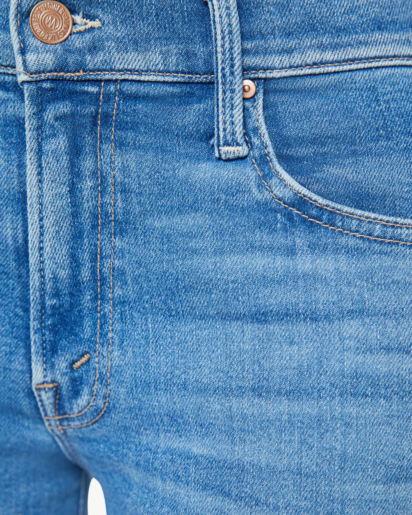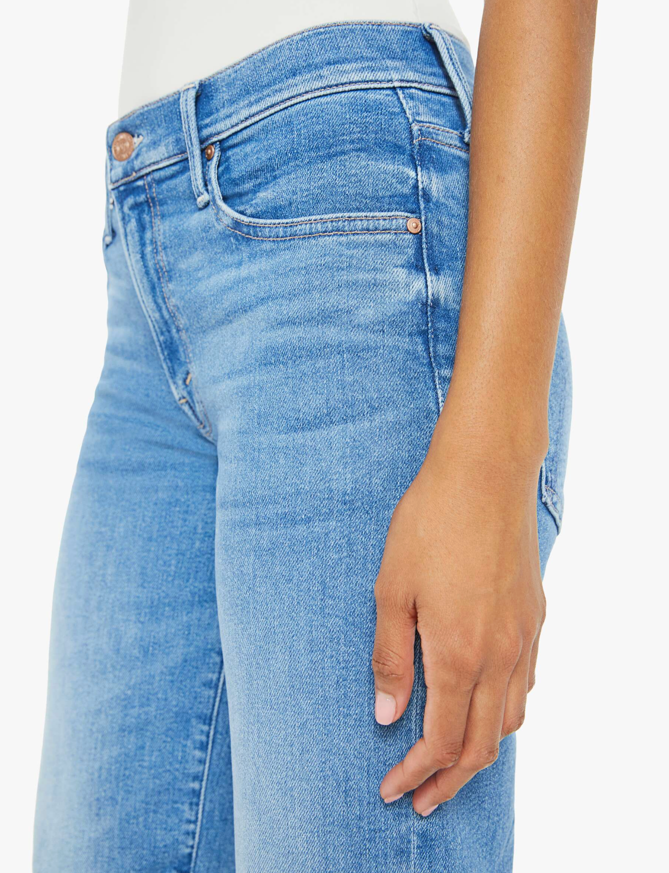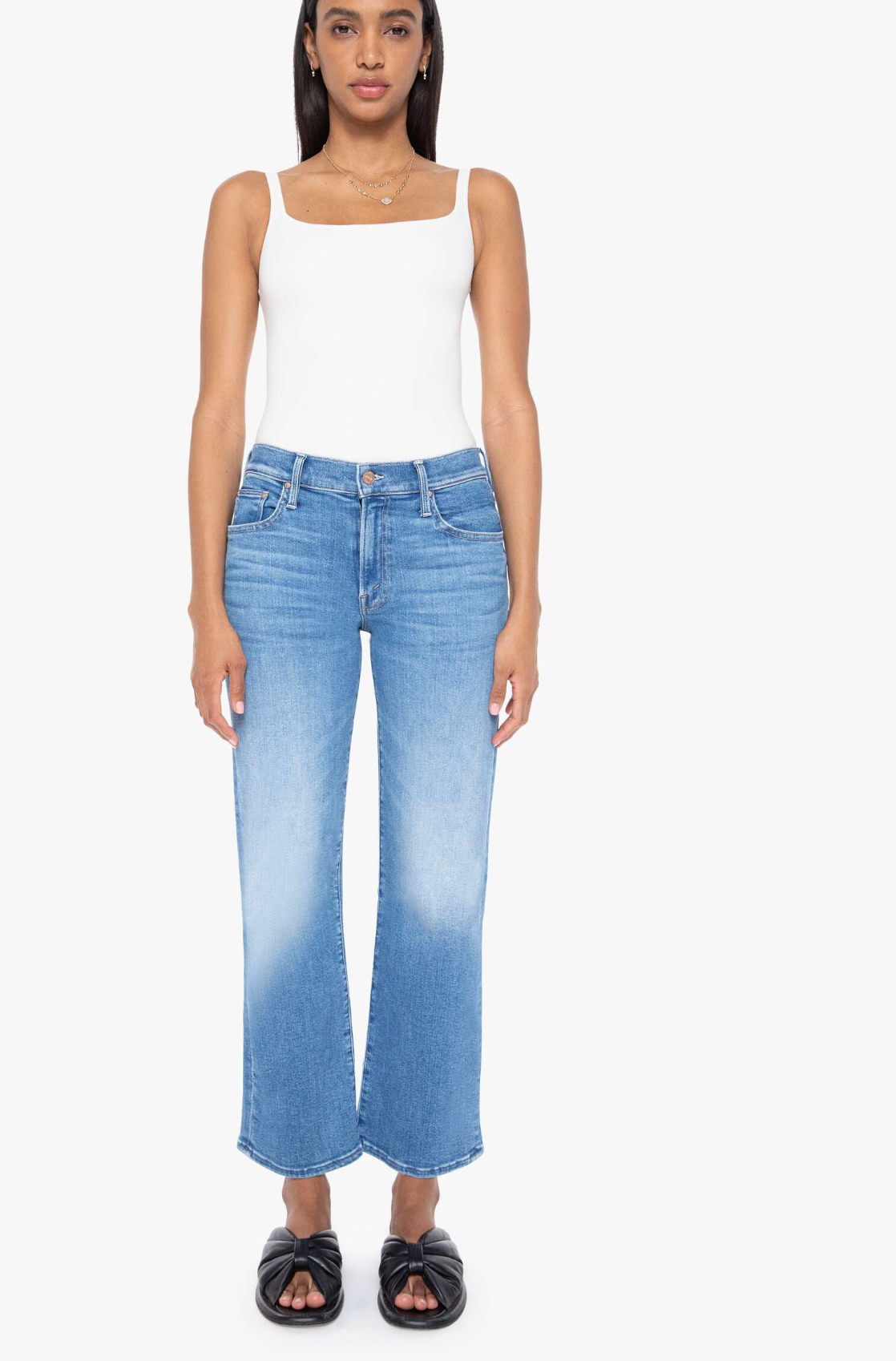 Color me surprised. Mid-rise jeans with a wide straight leg, zip fly and clean ankle-length inseam. Made from stretch denim, Out Of The Blue is mid blue with whiskering and fading at the knee.